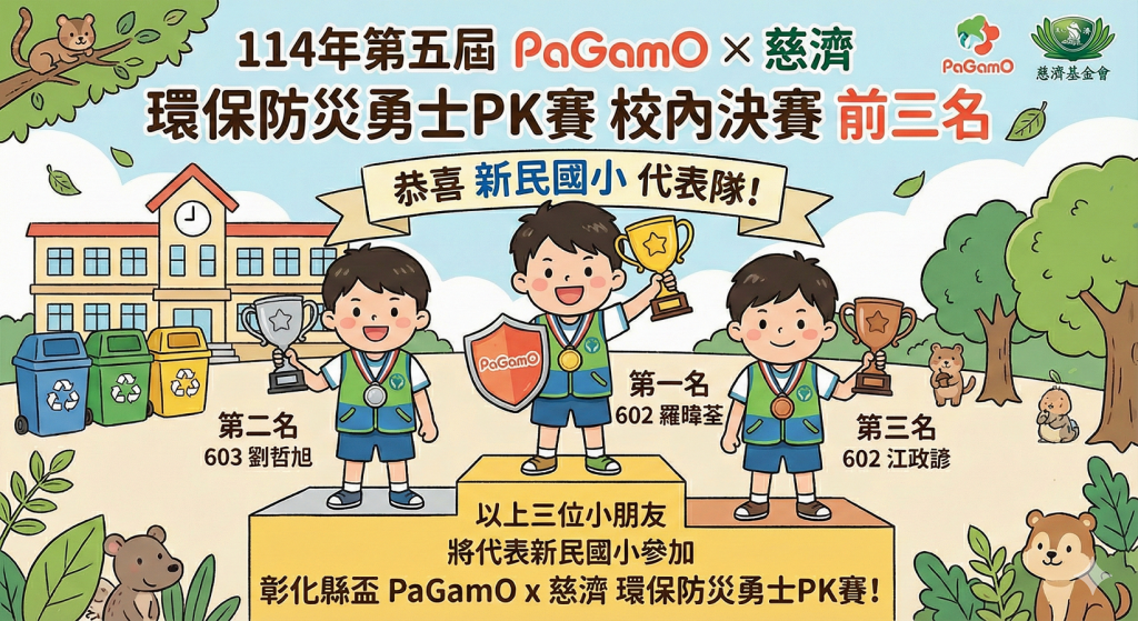 ☆校內決賽前三名: 602羅暐荃、603劉哲旭、602江政諺 ~恭喜以上三位小朋友,將代表新民國小參加彰化縣盃PaGamO x 慈濟 環保防災勇士PK賽~