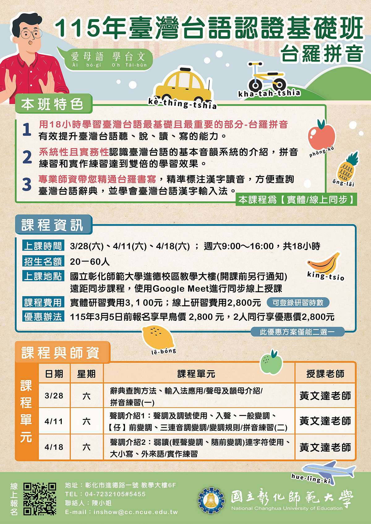 一、「115年臺灣台語認證基礎班-台羅拼音」