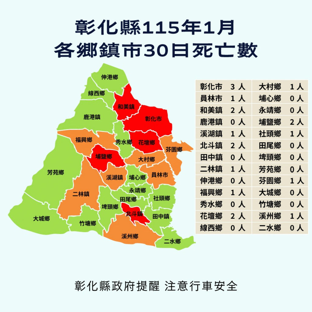 📍 本月事故熱點: 彰化市、和美鎮、北斗鎮、花壇鄉、埔鹽鄉。 行經這些路段時,請多留一份心。